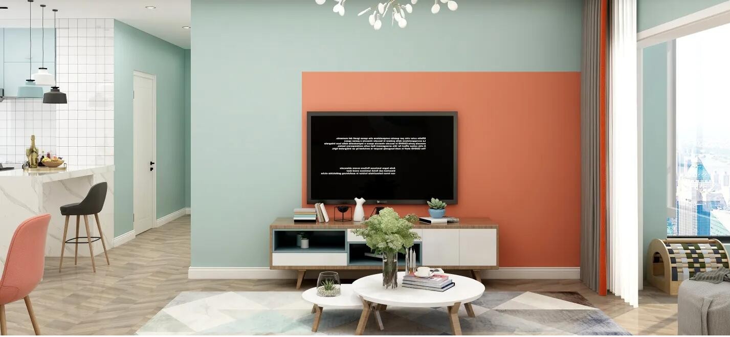 主色调采用红绿撞色,配色大胆,显得整体空间不在单调,绿植与吊灯相搭配,突出整体空间的自然与清新。