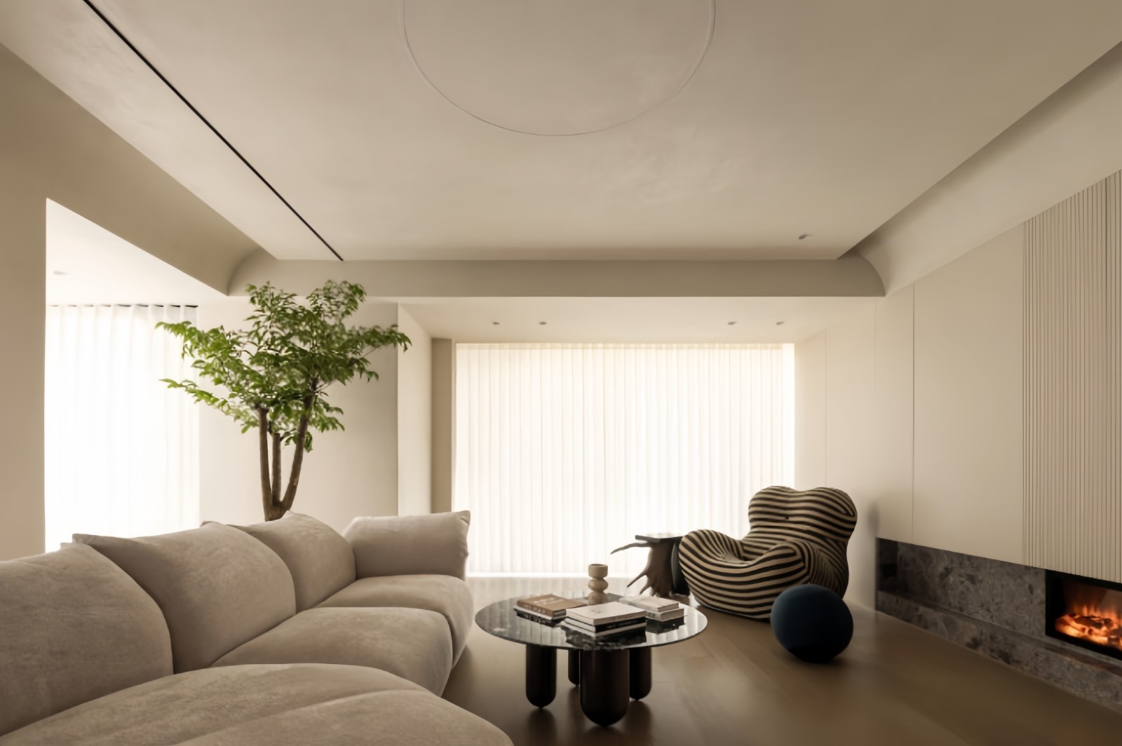 客厅以简约的色调和自然的材质铸就,简化的线条和色调透露出慵懒的***感,光线肆意挥洒,绿植亭亭玉立,仿真火焰悄然跃动,光是置身其中都让人感到被治愈。