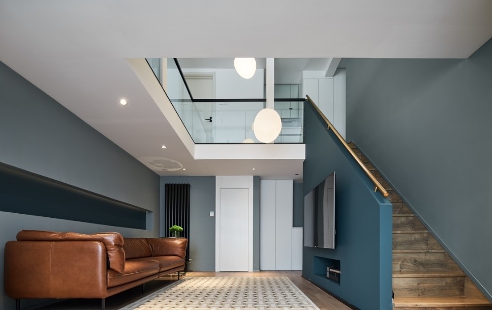 整个项目大面积运用蓝色系通过明度的不同,空间纵深感,搭配白色挑空空间,整体风格清新惬意;