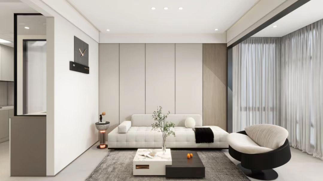 选择简约的沙发、茶几和电视柜等家具,色彩上以黑、白、灰等中性色调为主,再通过一些亮色的抱枕或装饰画来增加空间的活力