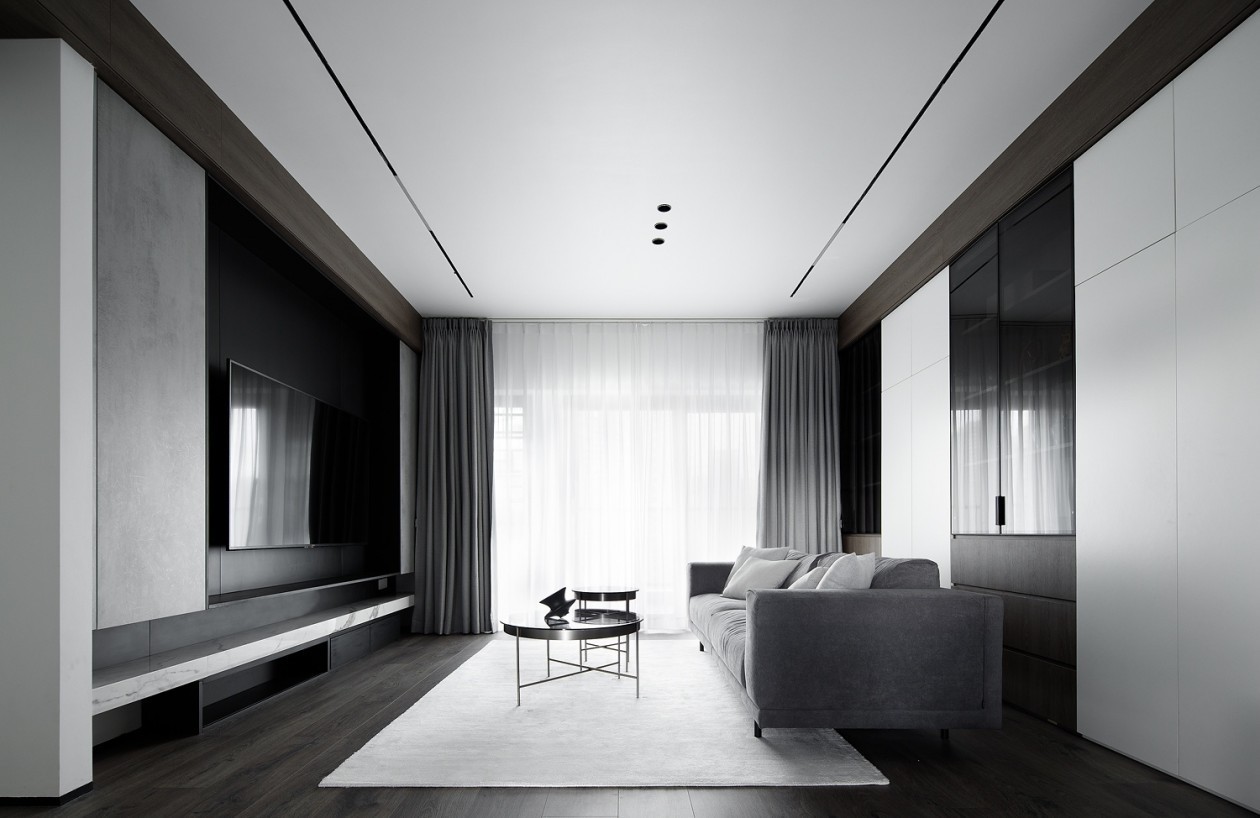 一层主要为老人的起居空间,整体呈现沉稳素净的宜居格调,打开门窗就能有优越的通风条件,不同的材质随光线产生变化,光泽层面的微妙细节在空间中流连,黑白灰悄然灵动。