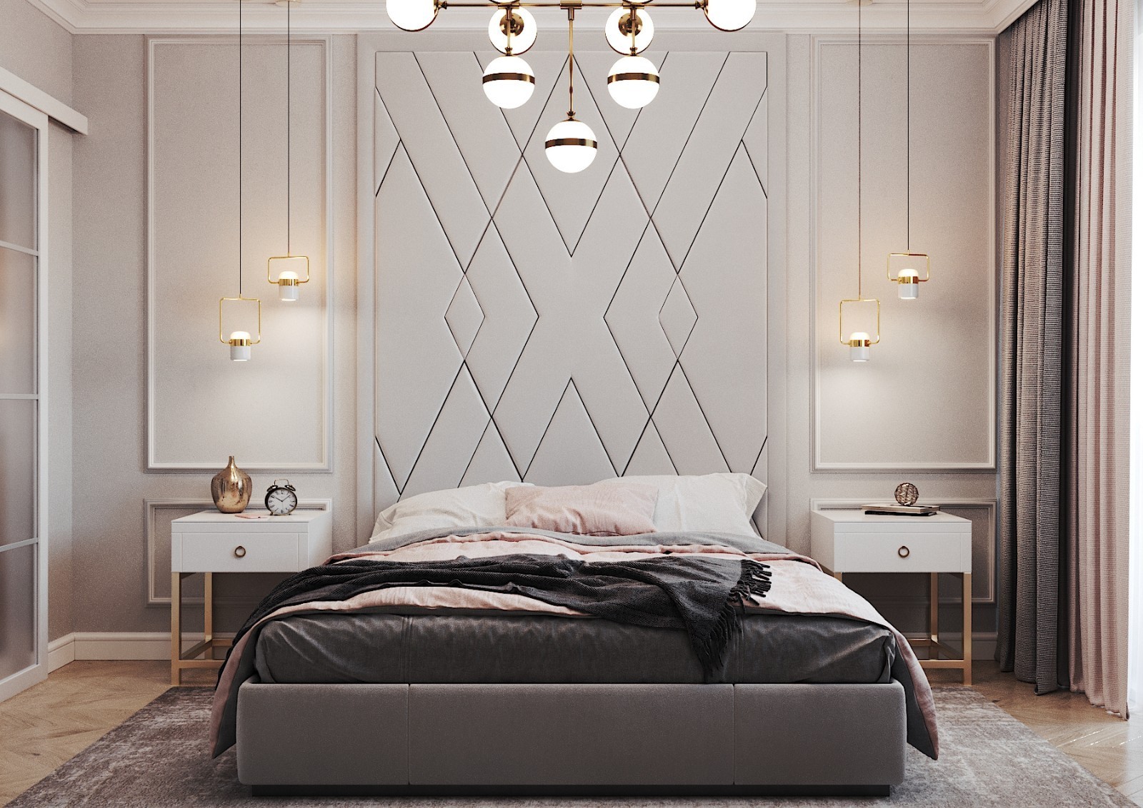 卧室背景墙自然的色彩,气韵生动,将清新与浪漫揉合,为空间营造出了温馨而静谧的气氛。