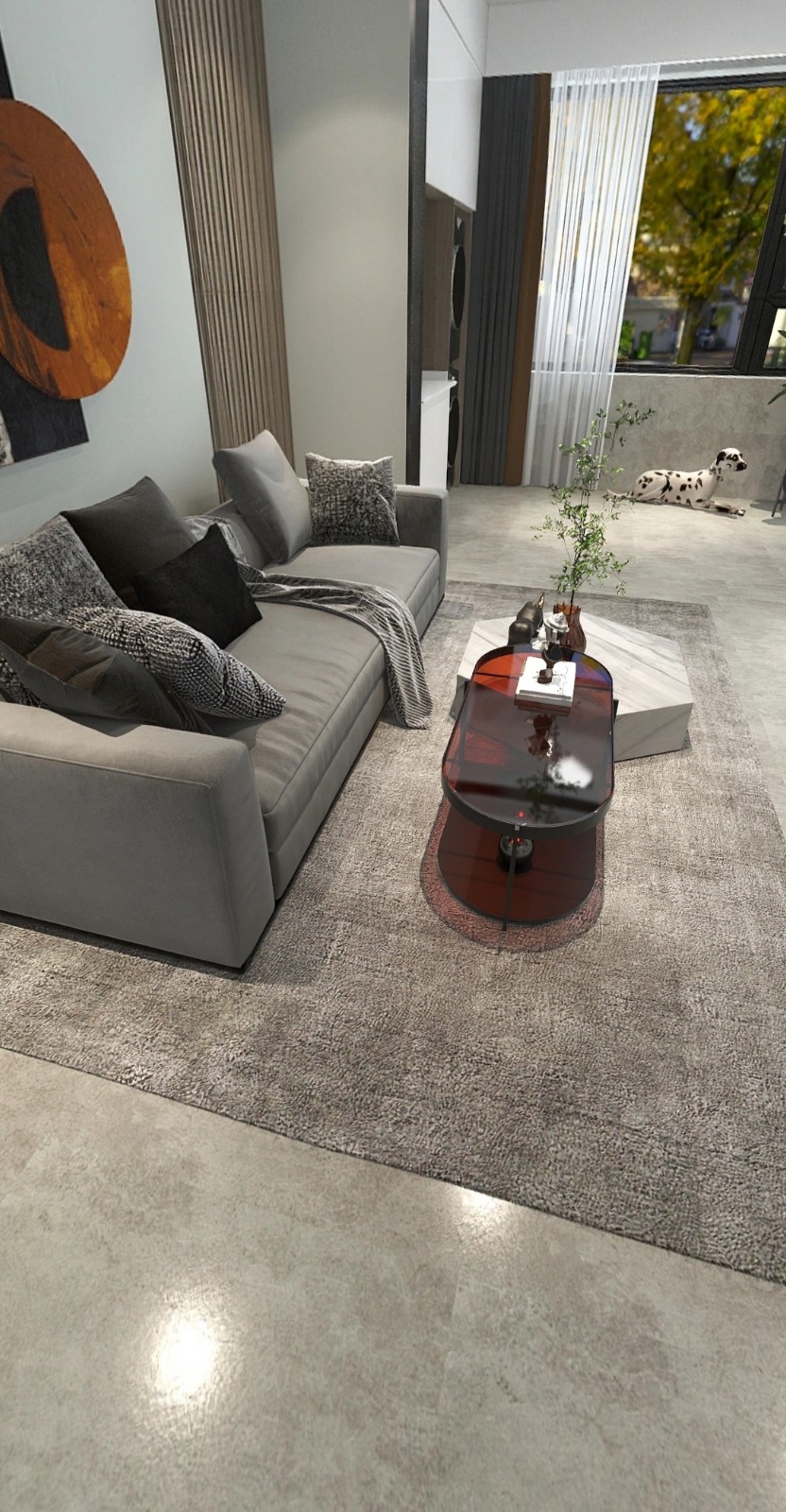 以现代简约的风格,用色彩与材质的变化,打造出一个温馨舒适的空间。
