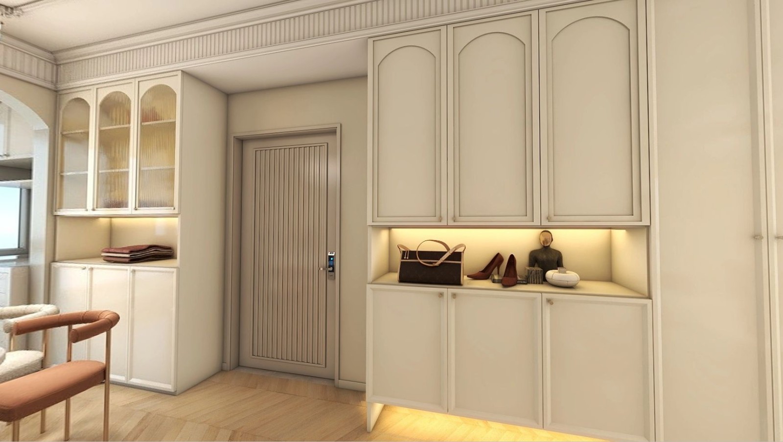 玄关柜下方留有换鞋空间,方便常用鞋摆放