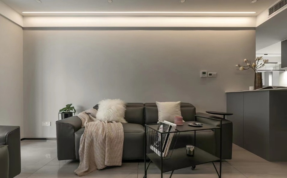 沙发区域是业主平时主要的休闲空间,不需要过多的装饰,简洁的视觉美感又保留必要的功能性。