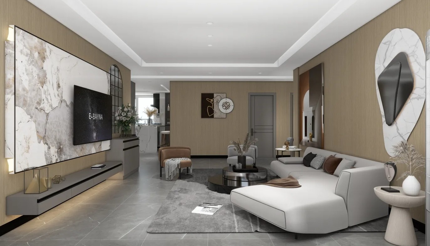客厅颜色整体以素色为主,客厅作为入户后的***个空间,也代表了整体的色彩走向