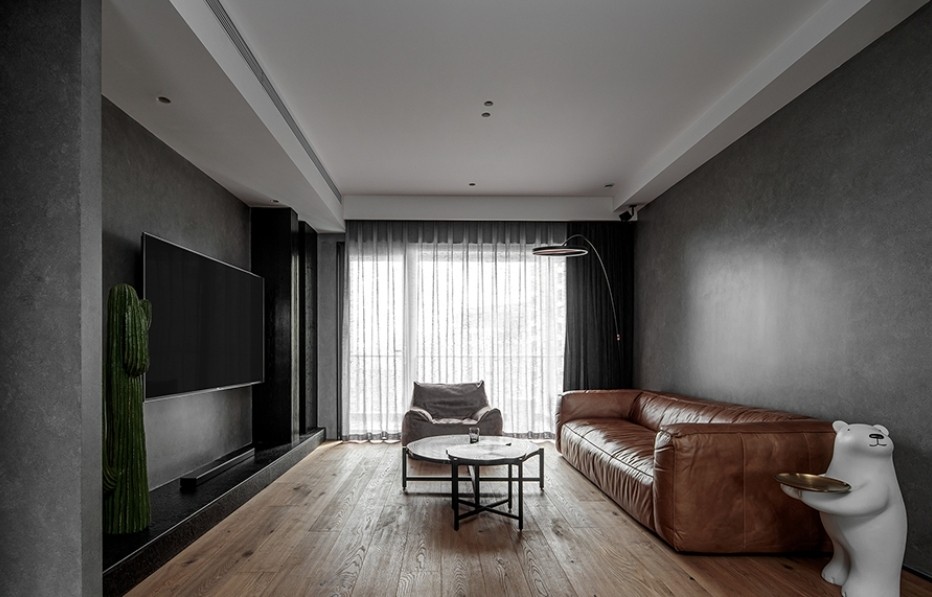 光与时间交织,选择用暗调去体现生活的品质与格调。整个空间框体用黑色和灰色,穿插木色及皮质为空间定调。