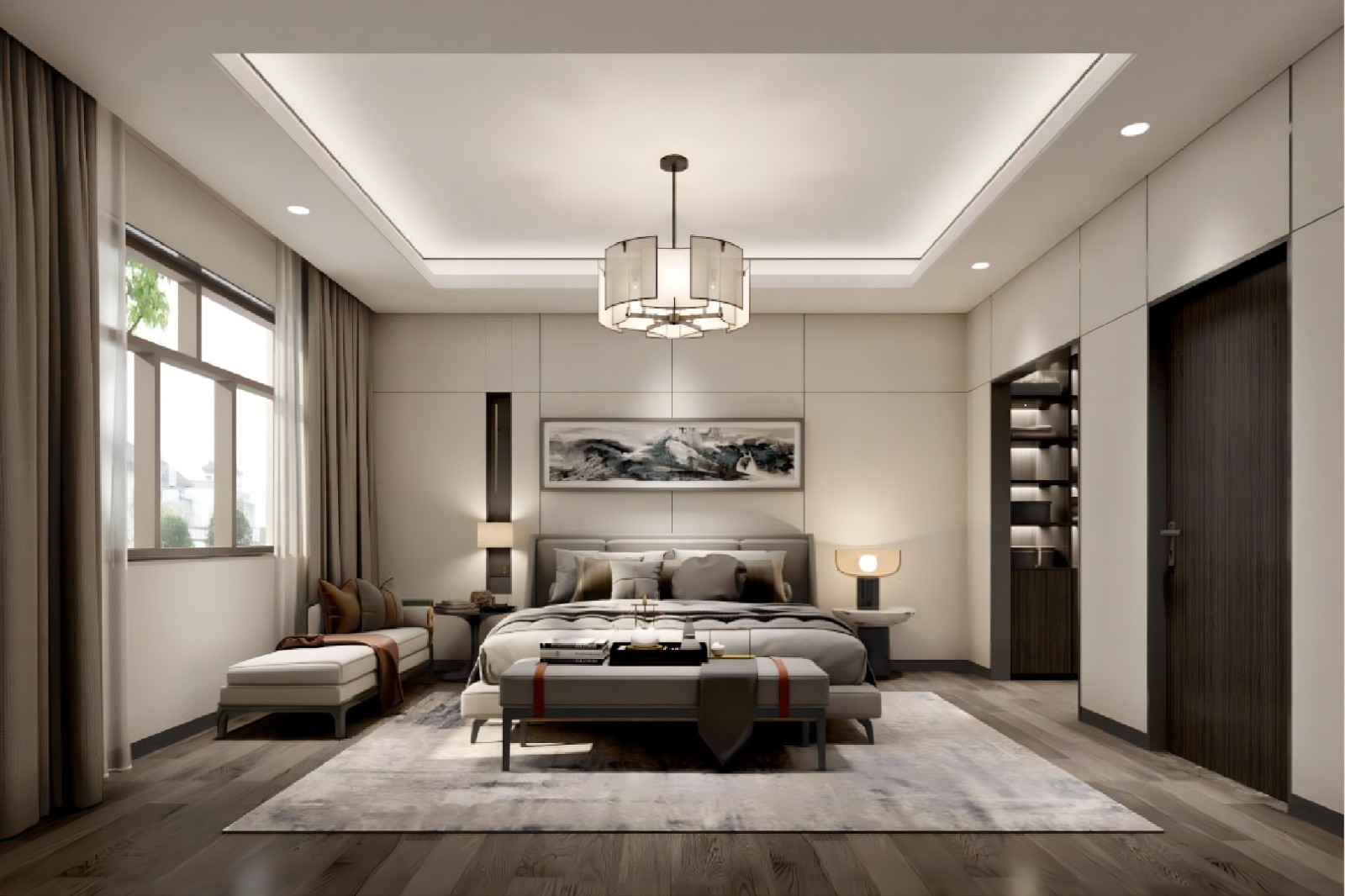 卧室呈现的不止简单而温暖的氛围,纯粹而优雅之视觉,而是赋予一种追求本质的生活方式,满足业主对光、空间、色彩、品位的需求。