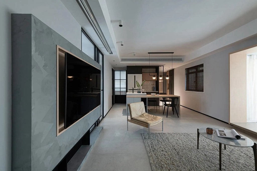 在体块之间的合并与穿插中,于空间拉伸出一个平静的场域。在这个面积不大的空间中,设计师倾向于“减法”的设计,以塑造一个简洁的空间。