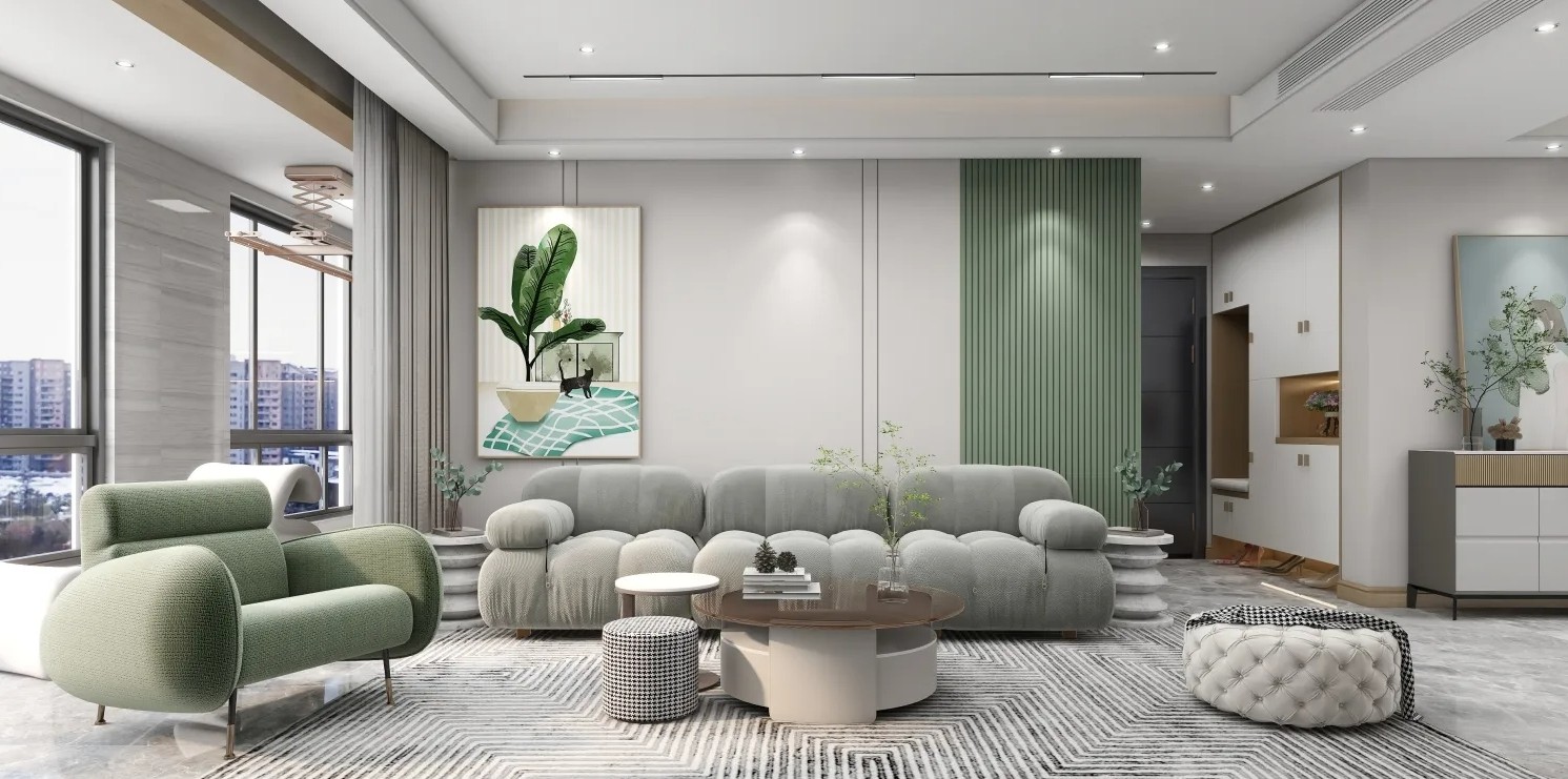 本案例《一荤一素》北欧风格134平方3房2厅3卫,以淡雅色系为主线,温柔实木色、清新自然绿再搭配雅致白饰面背景,为室内营造出舒适宜居的生活氛围,可以是窝在客厅的方块组合沙发里享受悠闲的午后,也可以是夜晚时分躺在柔软的床上安然入睡,在清新的家居环境里,不错过生活里的每一瞬幸福。