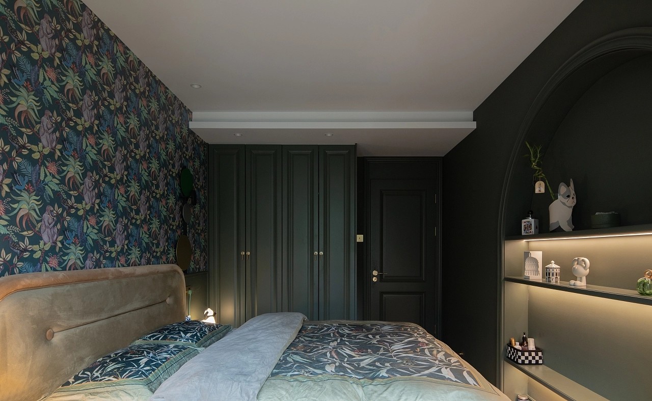 跟公共区域完全不同的色彩设计,整个绿色搭配同色系壁纸让空间更独特和整体,绿色百叶帘也融入的恰到好处。