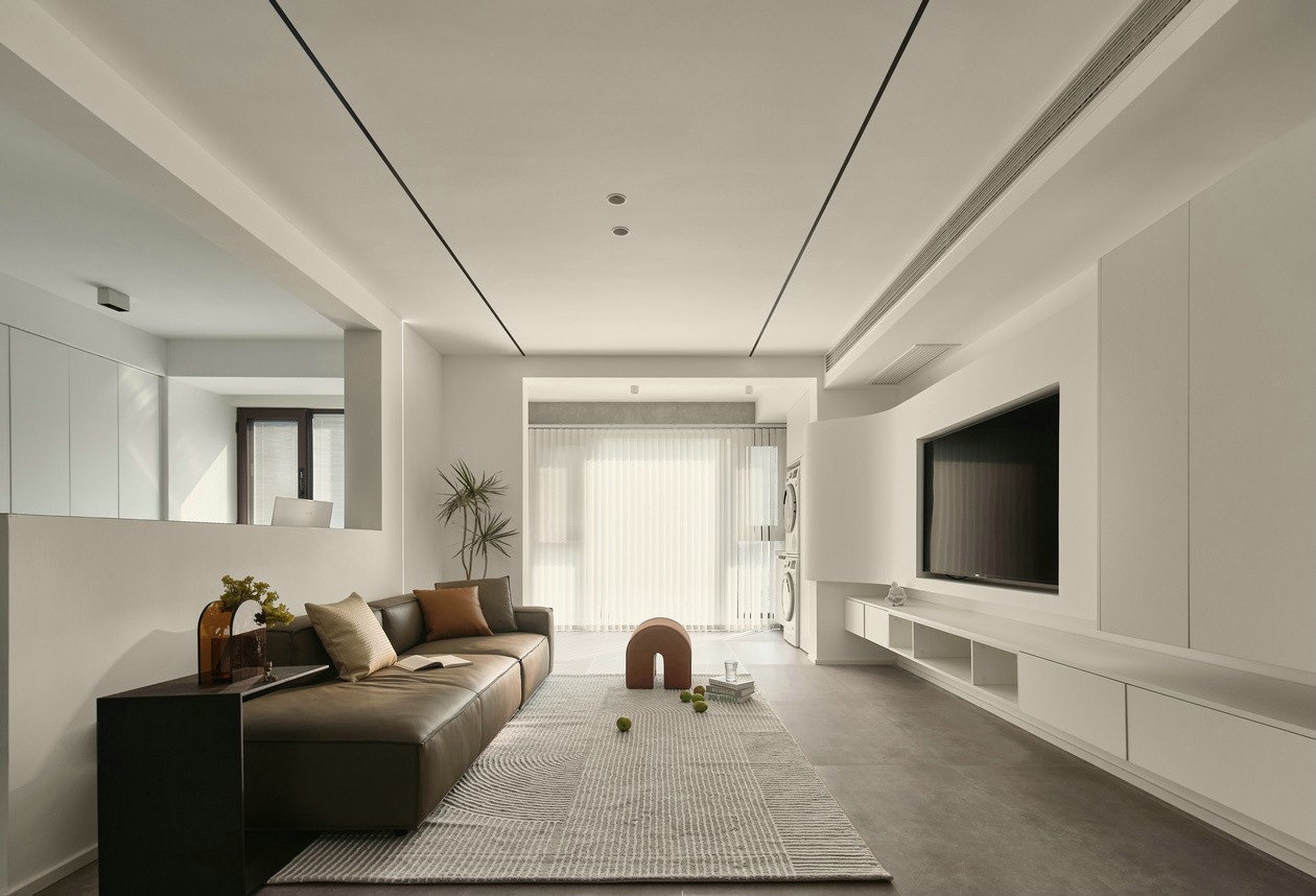 客厅装饰了简洁的灯带,柔和了空间的,同时也满足空间照明需求。