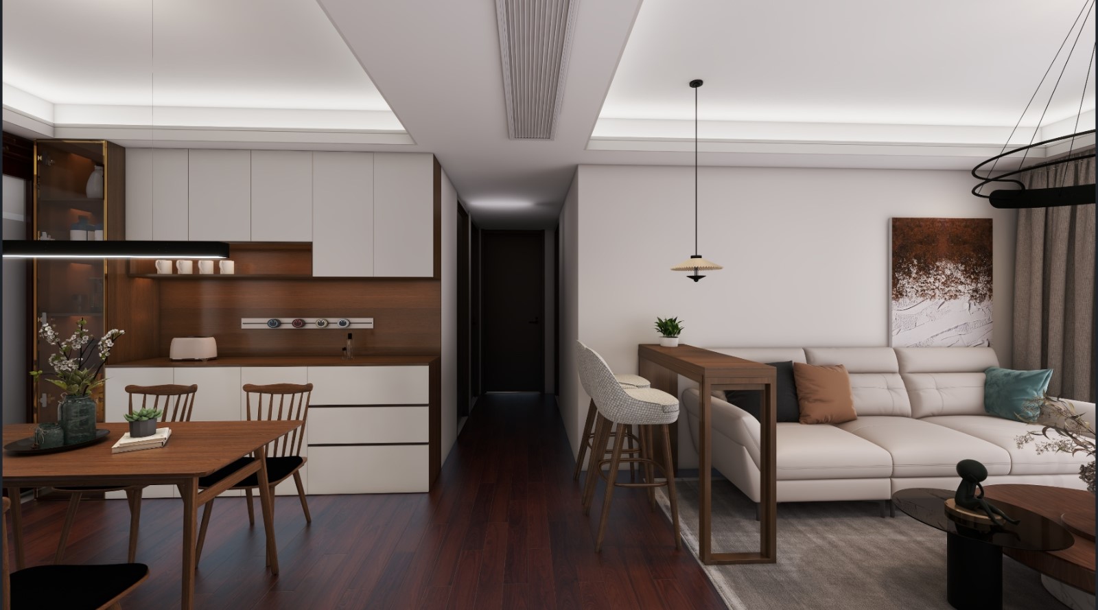 有人羡慕城市里的繁华,有人向往宁静的田园生活。这套全案风格定位 中古风 摒弃一切繁杂的设计,一切从简,相比较其他的设计风格,中古风更注重线条的流畅感和整体的设计感,看似平平无奇,实际上却别有一番韵味。