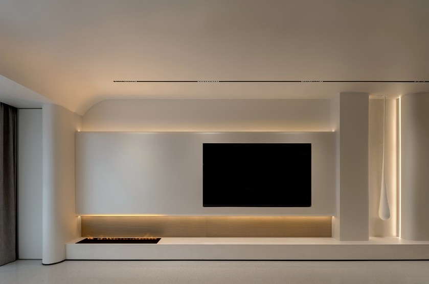 客厅用大面积的弧度造型来柔和空间的凌厉感。