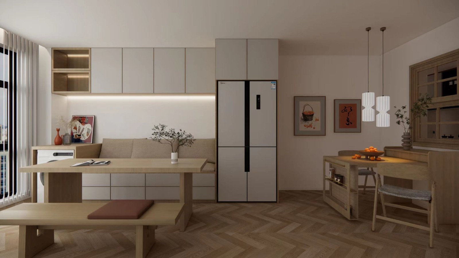 厨房单独划分在一个区域,使得烹饪过程中的杂乱的油烟不会扩散到其它房间,不仅让厨房外部保持整洁,控制味道和噪音,还能灵活地安排和设计各种烹饪设备和储存空间。
