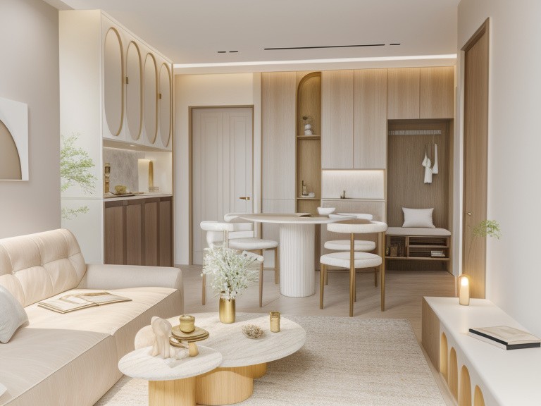 客餐厅一体餐边柜满足储钠,圆桌是空间不显死板