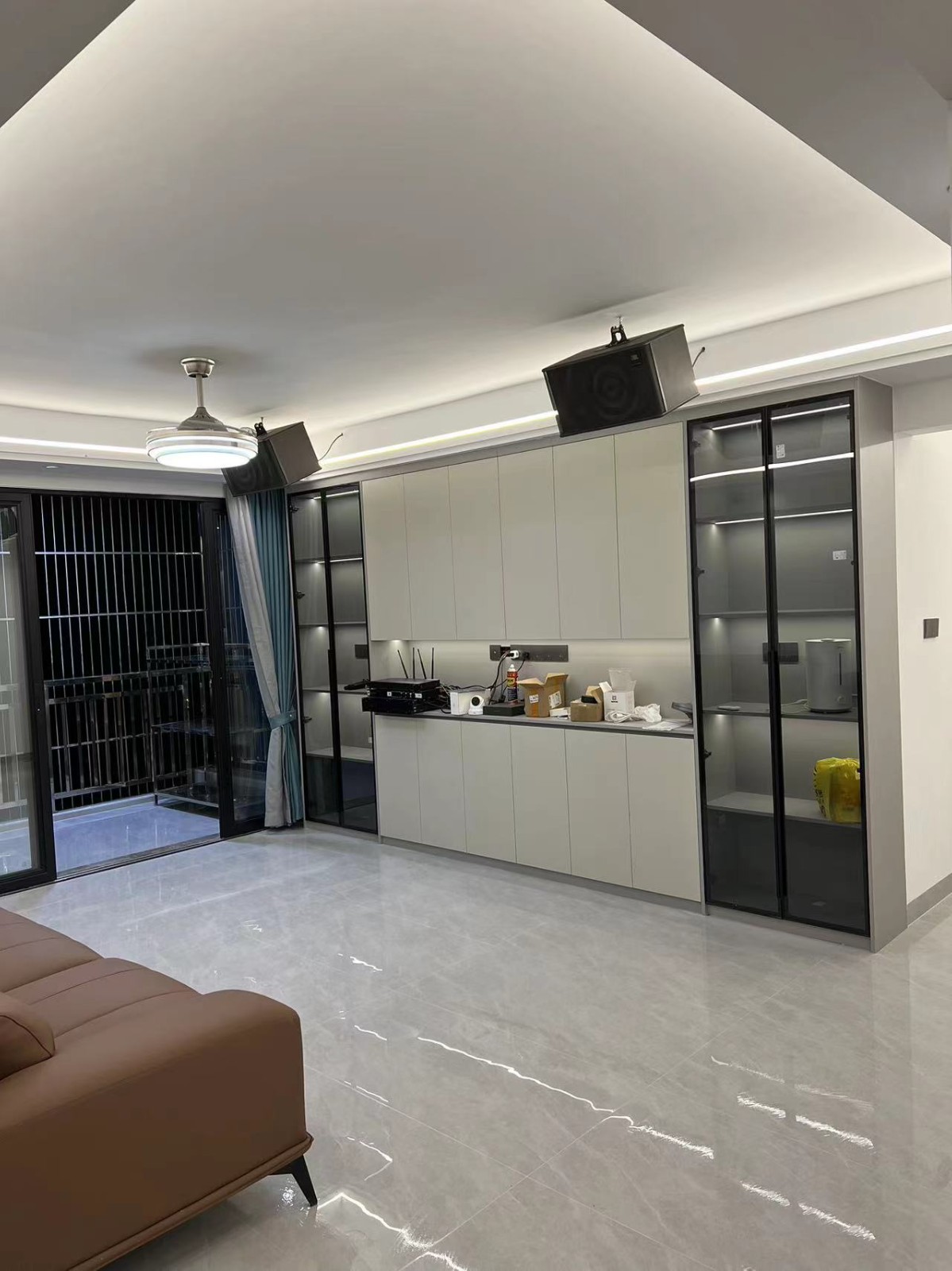 地板一米二乘六十大砖,走圈顶线形灯