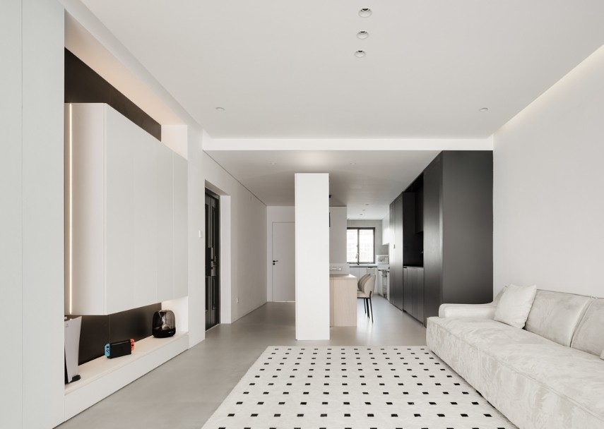 客厅设计极为简单,几乎不看电视,没有特别的电视墙,而是被收纳柜取代。