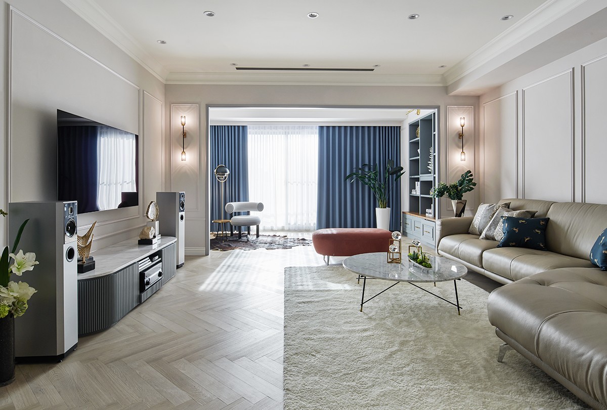 无论坪数大小,格局、材质细节与用色搭配都是必不可少的要素,举例来说,开阔通透是欧美常见的空间佈局,因此可採用玻璃隔间创造穿透感受,敞开宽敞明亮的生活视野。色彩方面,以掺揉灰调的低彩度与低明度为主,透过高包容度的颜色当做基底,柔和衬托著空间的各项元素,使五金、灯饰、家具家饰、软装配件与建材协调相融,细腻堆叠出独有情境式美学。