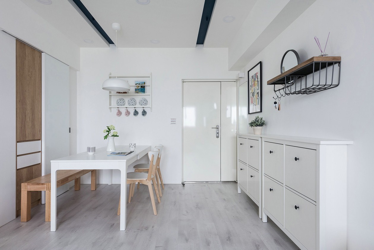 虽然整体的装饰以白色为主,但是加入了部分的黑色,原木色以及其他色调来作为点缀,这样的空间才会显得太过于单调乏味,如果大面积的白色却没有其他色调来调和,就有种“性冷淡”的风格了。不过这样的装饰很是温馨。