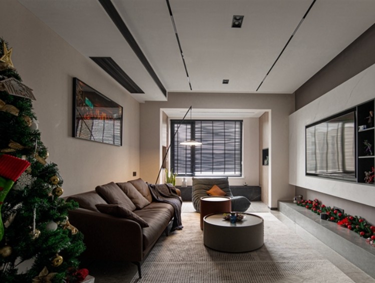 步入客厅,空间自然过渡,利落的线条贯穿始终,令空间变得稳定又规整。