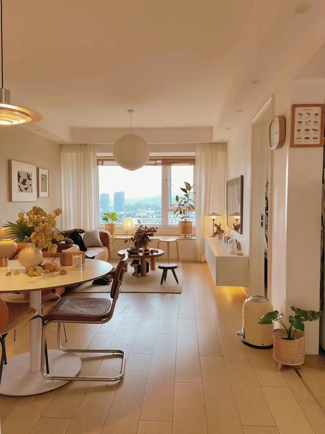套内仅70平,三室两厅一厨两卫,每个空间都比较小,但也都很精致,一家三口居住是足够的,总花费在30万+,中规中矩。 硬装也都是比较简单的,大白墙,木地板通铺,简单吊顶,这也造就了,后期屋主家的软装更随意,可替换性很高。装完后,很难定义家里的风格,像原木风,又不完全是,像北欧风,也不完全相同,后来干脆叫“美拉德风”,也就是以棕色系为主的家装风格,自然色系,非常耐看,且装修过程不易翻车。