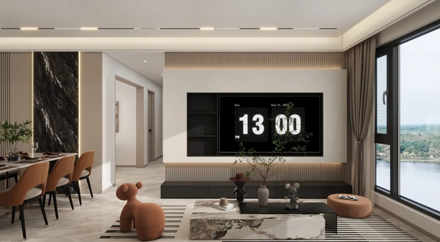 电视背景墙墙面格栅,悬空电视背景墙,落地地柜设计