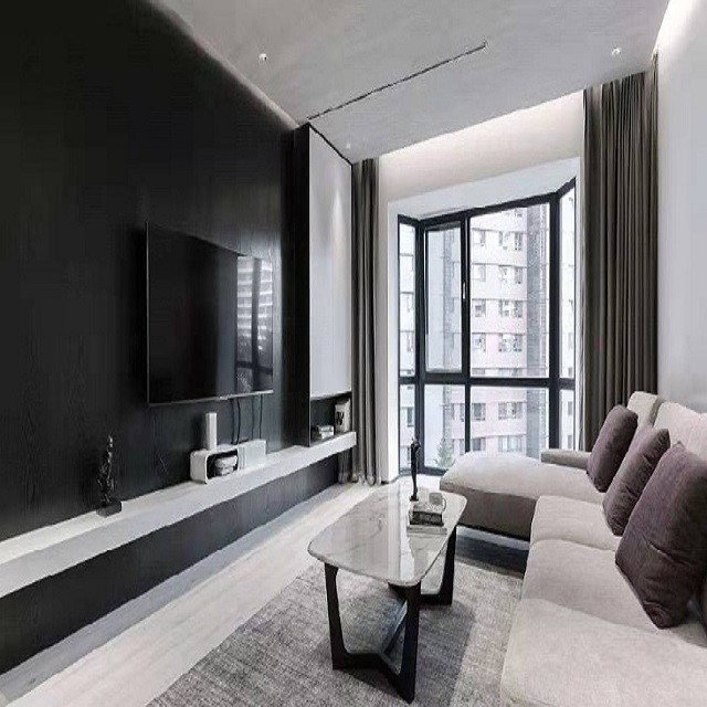 对空间互动和动线安排方面进行1合理的规划使作品除了上呈现时尚美观之外在使用上非常具有实用性。看似简单淡雅的色彩与结构却在不经意间触动你的心灵蓝色沙发镂空设计布艺硬包结合搭配使整个空间都有了艺术感