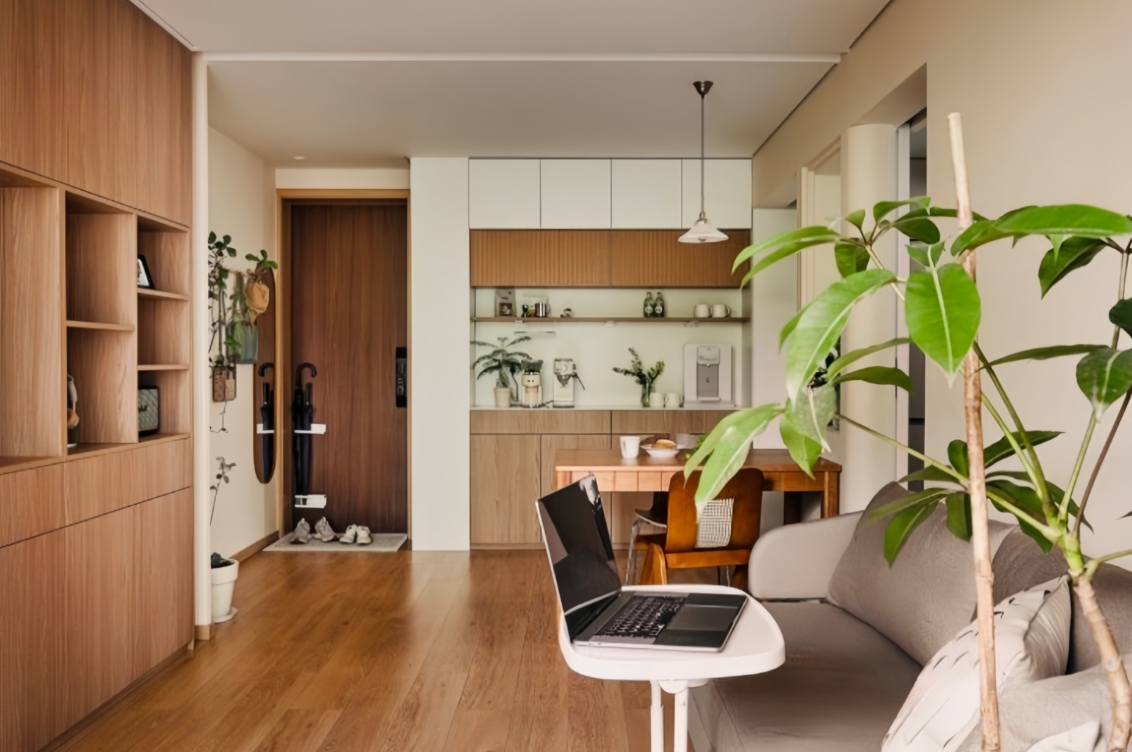 这是一套56㎡的一室两厅,在装修前业主两人在这套房子里居住了很长一段时间,一方面双方的关系在相处中日益紧密,另一方面和这所房子的关系也在日复一日的生活中发生关联。经过一段时间的磨合,他们希望双方的关系也好,和这座房子的关系也好,都可以发生一些新的变化。