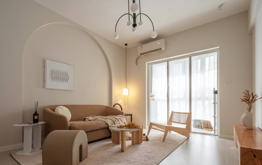 全屋都用了奶咖色的墙漆,通过暖光的营造,整体出来更温馨。