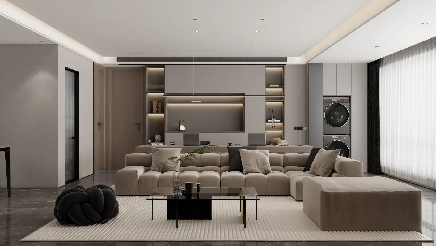 全房储物空间利用性很高,客厅以黑,白,木色为主,富有层次感,搭配灯光营造氛围 ,无主灯设计,很好的增加了空间延伸感,整体设计崇尚极简,干净的生活理念。