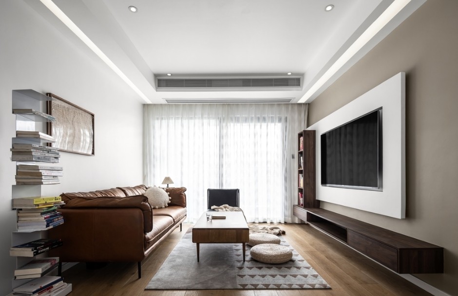 悬浮式书架的极简线条造型,既提升空间质感,也满足日常随时看书的需求。