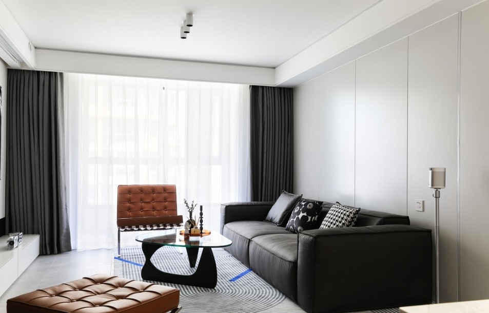 本案夫妻希望摆脱生活工作中的忙乱, 把自己的家打造成一个没有繁杂装饰的静谧港湾。 以黑白灰做主色调, 搭配造型简约的软装家具,奠定居室简约基调。
