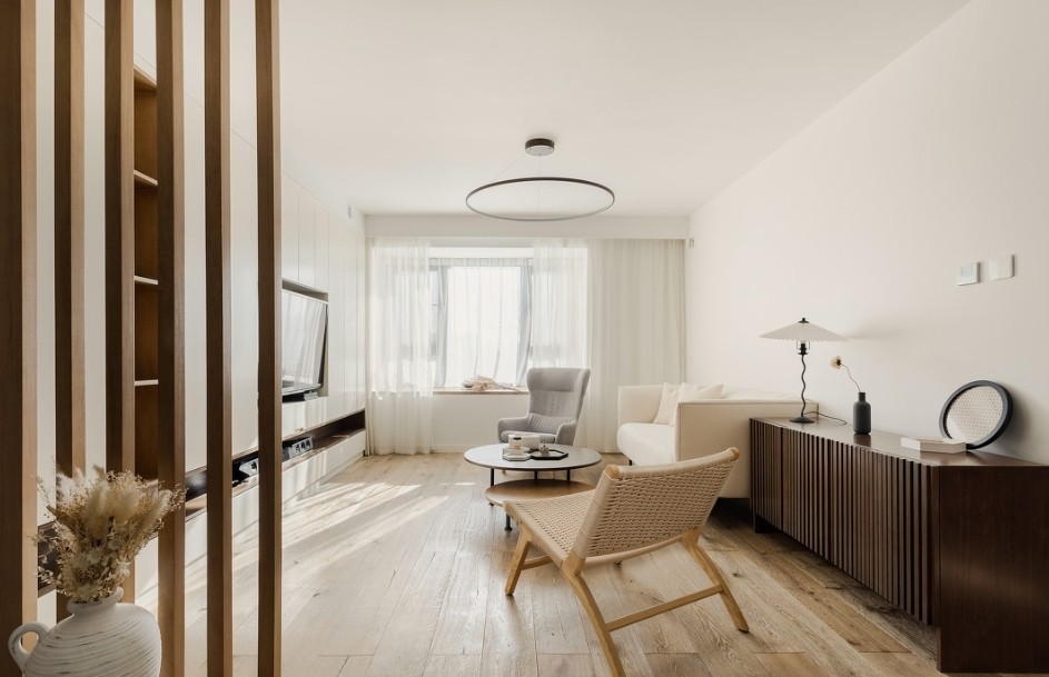 预算有限时, 设计师的责任就是, 在不超支的前提下, 为屋主造出惬意生活空间。给家裹上舒缓奶油色, 奠定空间温柔基调, 再搭配上温润原木, 居室自然会呼吸。 即使没有钞能力, 也能用简约配色给家注入超能力, 为屋主打造出会呼吸,无负担的生活避风港。