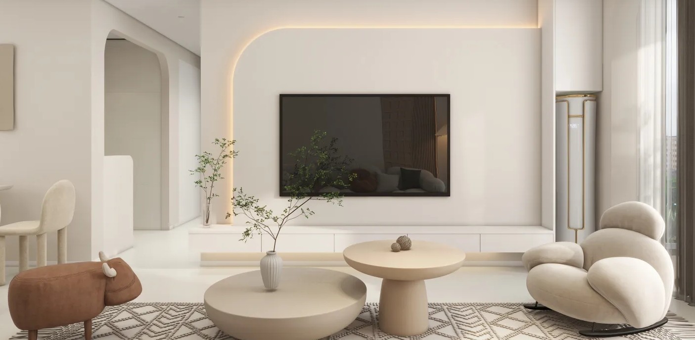整个空间被温柔的奶油色包裹,塑造出如洞穴般的恬静、温馨的质感。