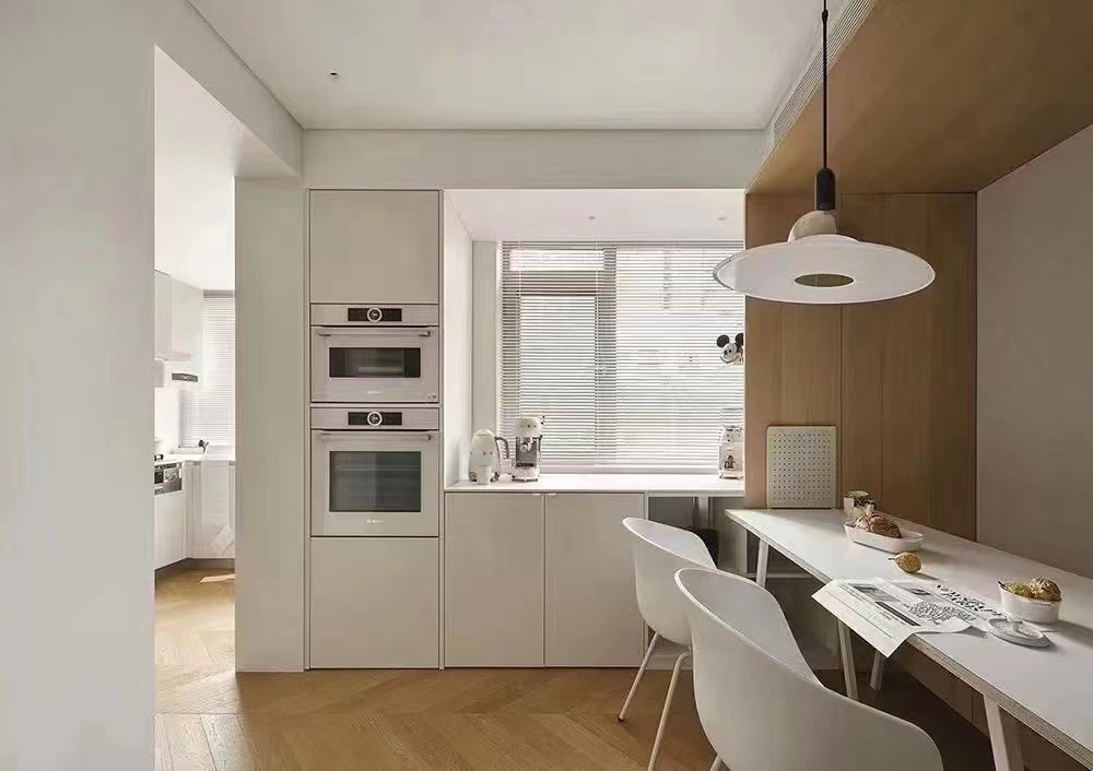 我们调整了客厅和餐厅的位置,用墙做一些隔断,让空间开敞通透。