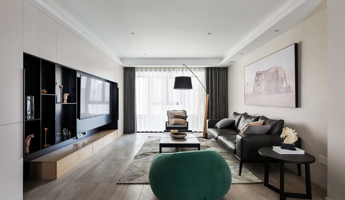 客厅将电视背景和展示柜结合起来,实用也美观。整个空间给人干净舒适的感受。