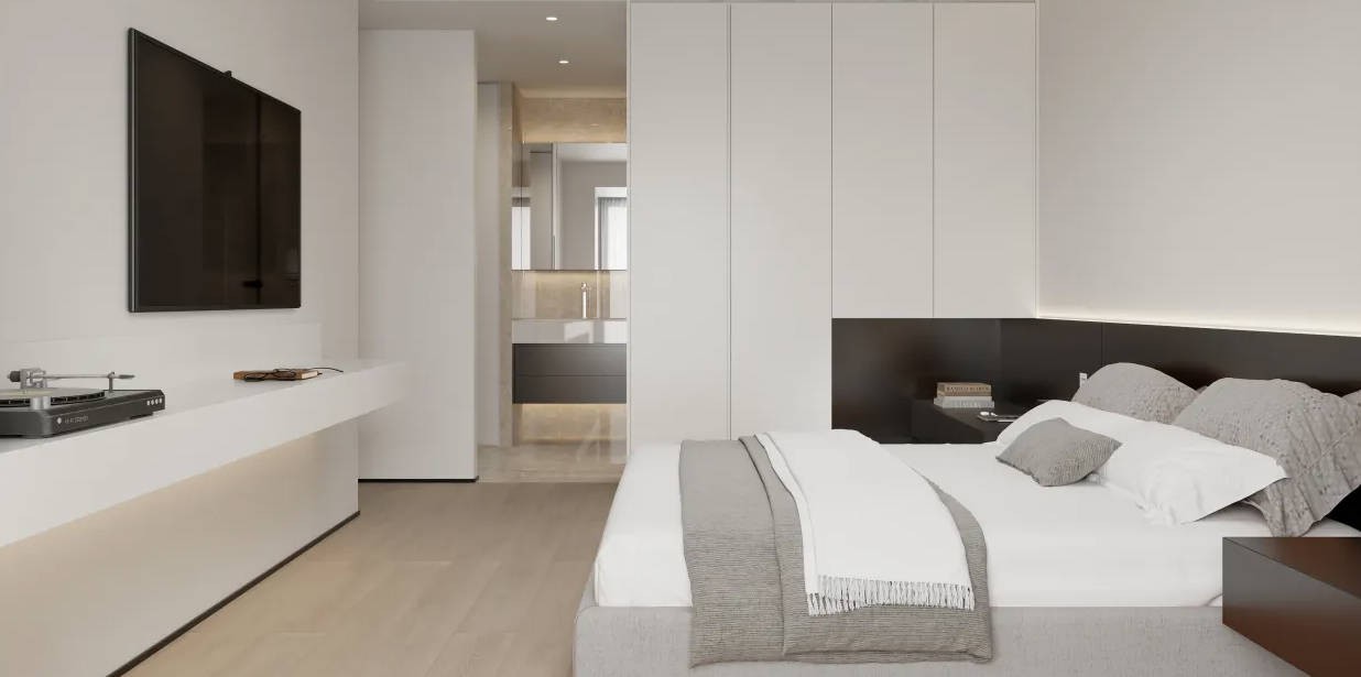 女屋主对主卧衣物收纳有很大需求,将公区空白空间并入主卧,设计两个衣帽间,再多衣服也能容纳。 房间明亮宽敞,屋主有了专门的梳妆区+休闲区,正如那琳琅满目的日常用品,女主人令人艳羡的精致生活一一展现。