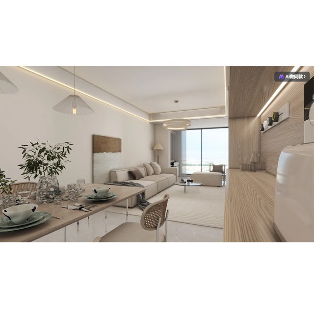 客厅选择了原木风的淳朴又添加了奶油风的温馨