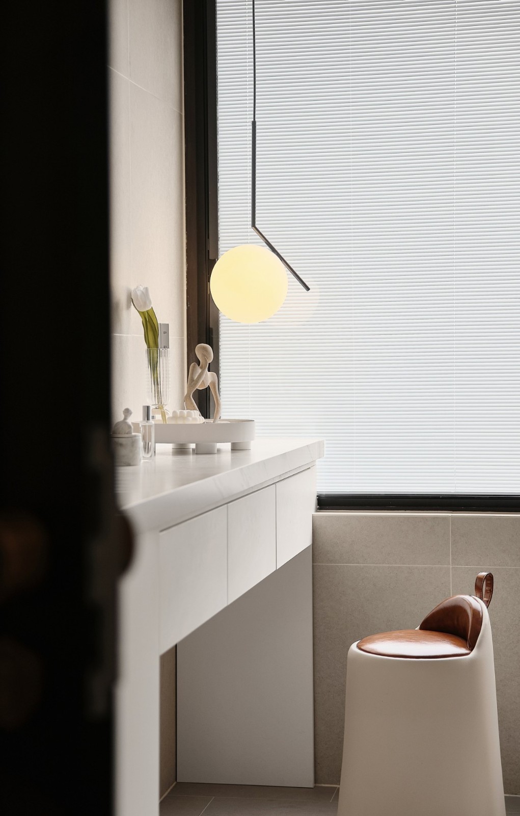 主卧套间内的盥洗室,为了保证生活的品质,在长廊型的卫生间内, 依旧采用了三段式干湿分离设计。