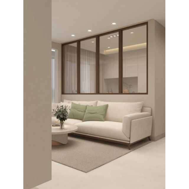 客厅沙发的墙与钢琴室做窗户使空间更加的通透。