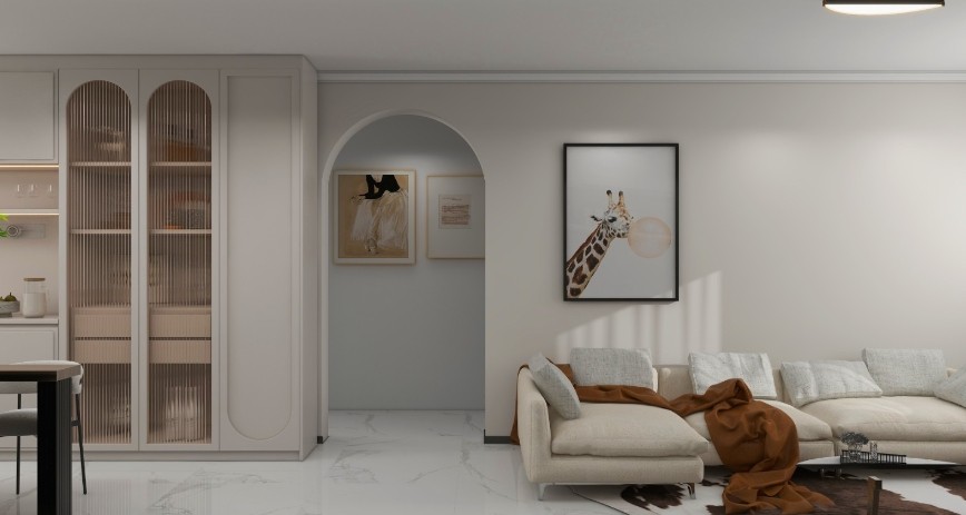 弧形墙体相互呼应,使空间不违和