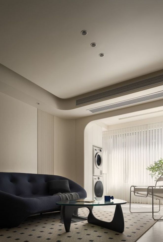 该案例整体以现代简约风为主,整体简洁干练,搭配上少量圆弧石膏板造型,为整体又增添了一丝柔和。