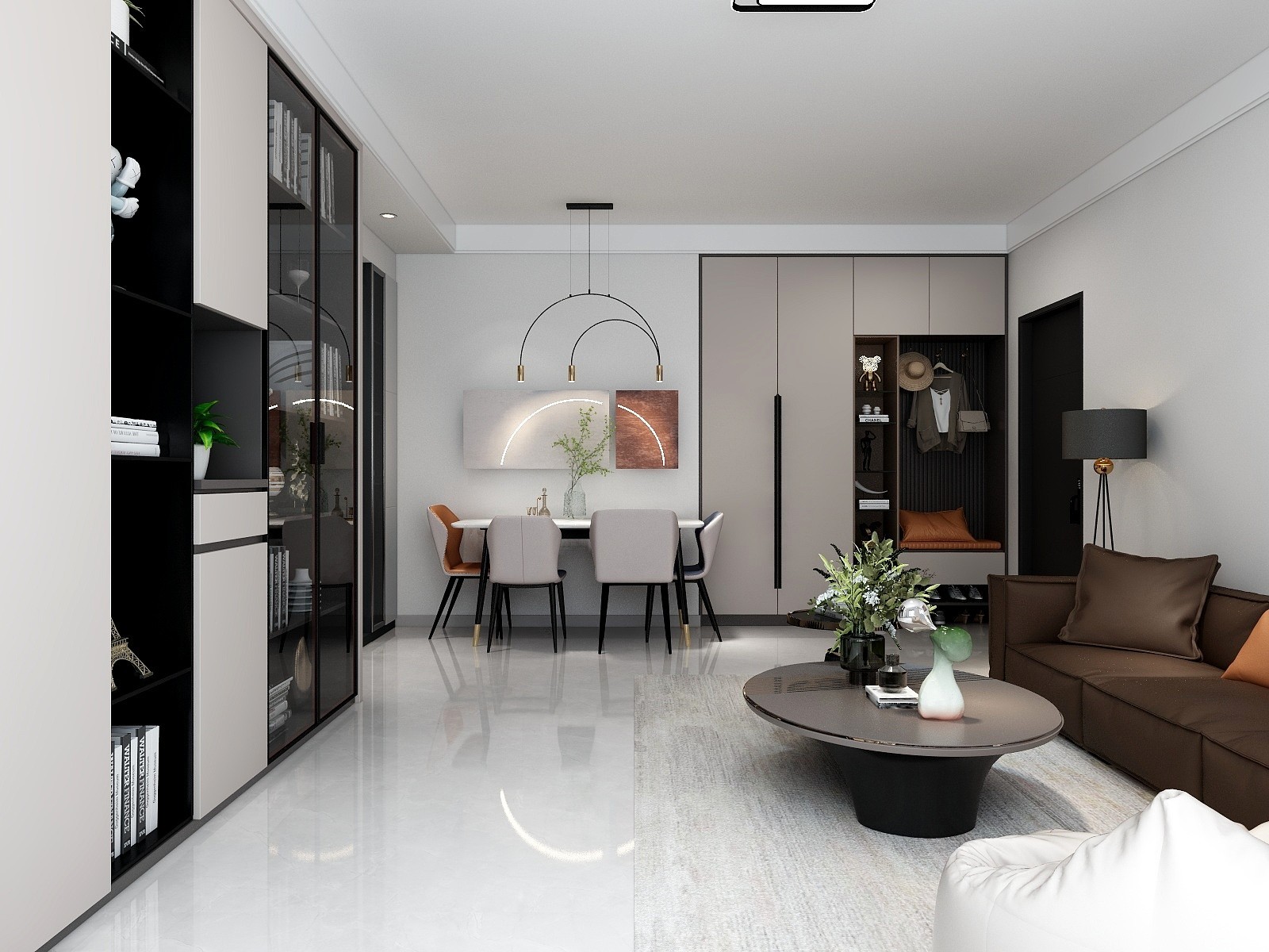 餐客厅一体,简约轻奢风格,定制家具
