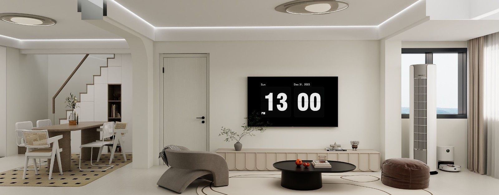 简约现代风格的家居设计,以白色为主色调,辅以木质元素,营造出温馨舒适的居家氛围。 简约大气的客厅设计,没有多余的装饰,却处处透着精致。 大大的落地窗让整个空间更加通透明亮,视野非常好。 客厅与餐厅相连,动线流畅,空间利用率很高。