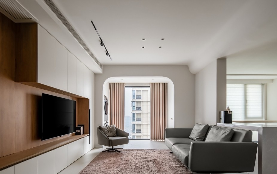 无主灯设计——磁吸式壁灯+圆筒射灯+灯带的组合,干净利落、造型简约,不仅能满足日常照明需求,而且因为极简的设计风格,提供了更为开阔的视觉效果。