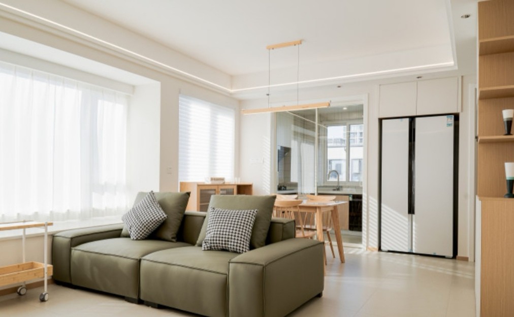 客厅是屋主一家日常生活的重要区域,通过隐形门的设计实现与其他公共区域的连接与独立,开合之间,动与静因应生活而灵活设定。
