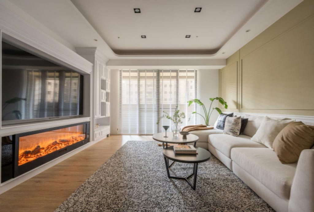 沙发靠墙摆放,L型的转角造型能够更好适应家庭生活的需求,兼顾休息娱乐,接待客人等多个方面。