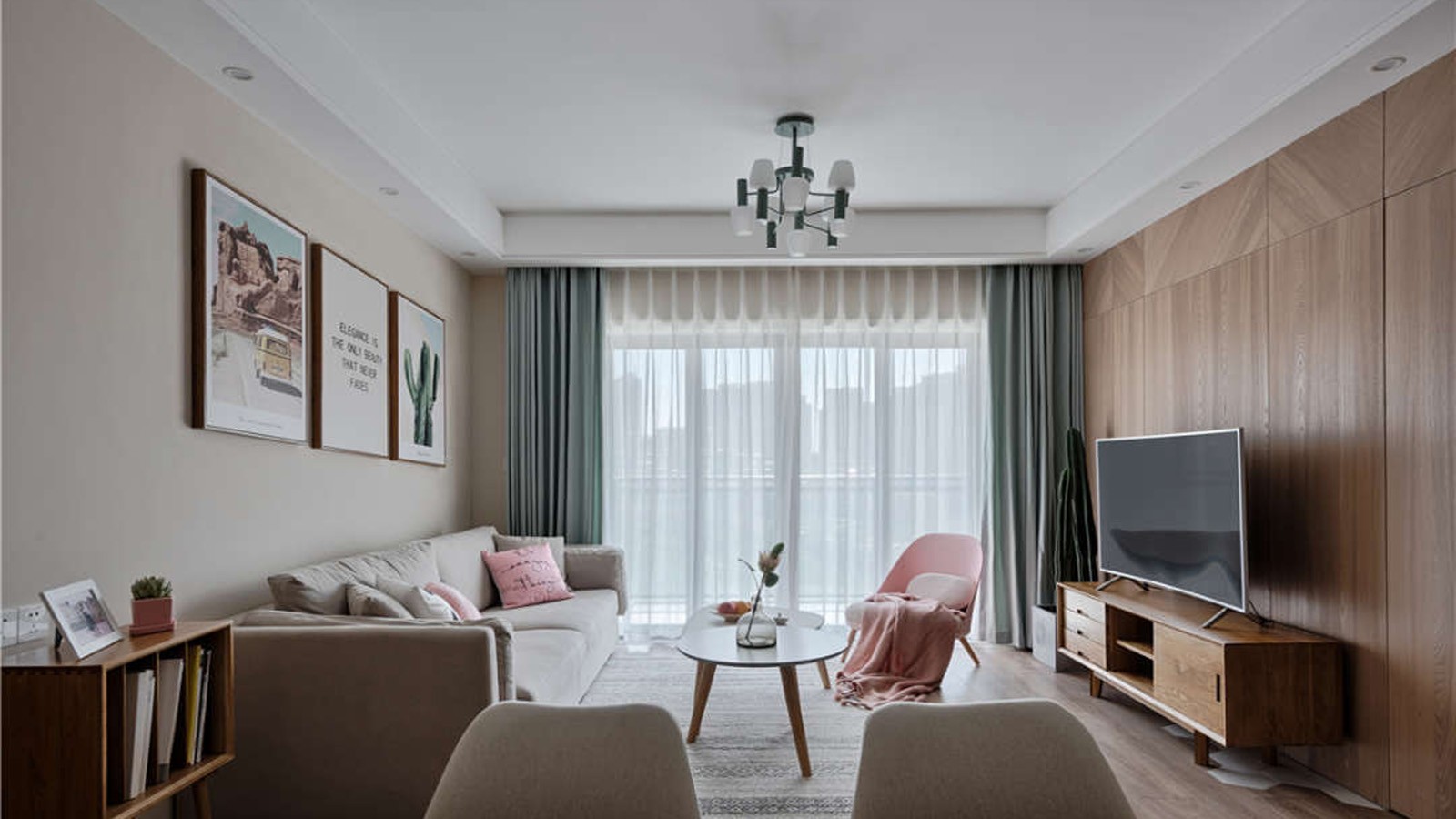构图的美感在于色彩和图案的运用,多种元素充斥整个空间,让设计的美感丰富又均衡。保证空间的整洁性,美观又不失实用。