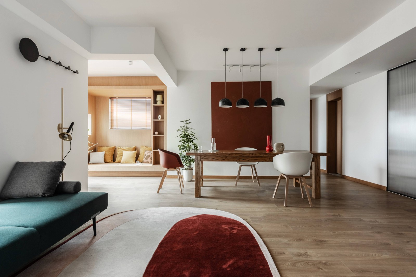 沙发一侧的地台延伸至书房,做了绿植小景,给空间带来生机,还能兼顾收纳。